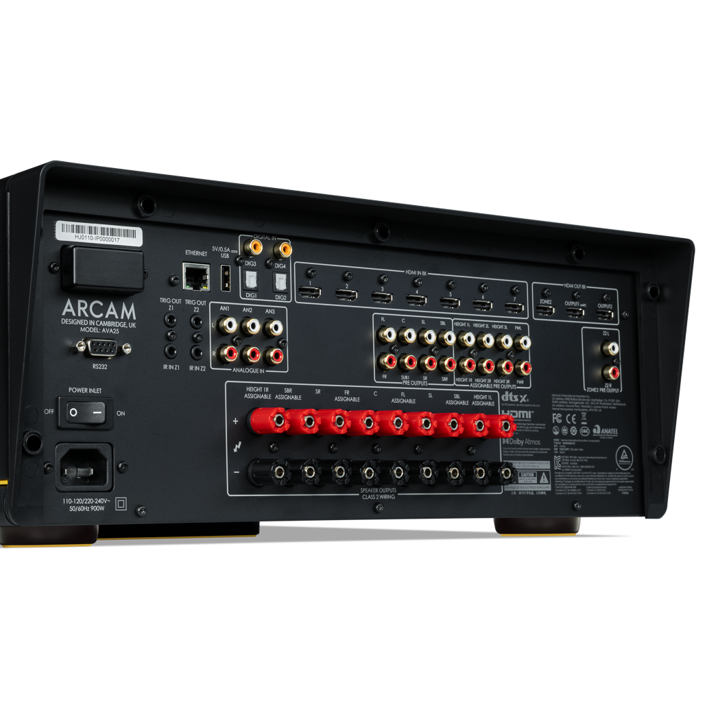 Kilenc csatornányi nagy teljesítményű erősítésével az AVA25 könnyedén kiszolgálja az olyan térhatású házimozi rendszerösszeállításokat, mint a 7.1.2 vagy az 5.1.4, emellett rugalmas bővítési lehetőséget kínál további mélynyomók, magassági vagy surround sugárzók hozzáadásához. A Dolby Atmos, a DTS:X, az IMAX Enhanced és az AURO-3D technológiák elrepítik Önt a moziélmény világába, miközben a Dirac Live szobakorrekció biztosítja az Ön teréhez szabott, hibátlan részletgazdagságot.