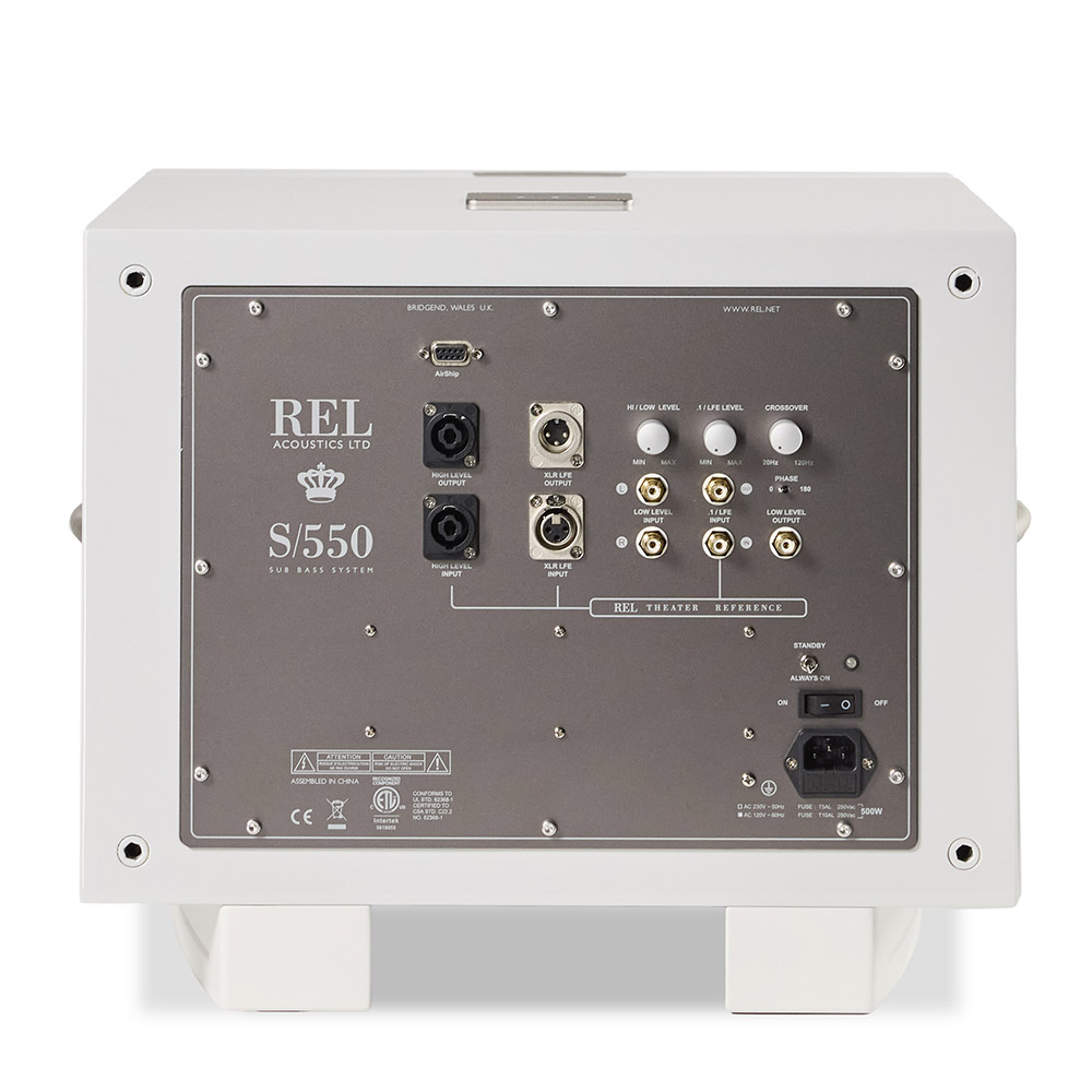 Az S/550 a Serie S termékcsalád legkisebb modellje. Garantálja azt a sebességet, mélységet és árnyalatgazdagságot, amely a REL teljesítményfilozófiáját meghatározza. Míg nagyobb testvére, az S/850 állítja fel a végső mércét, az S/550 is számos részletében azonos tervezési innovációt tartalmaz – biztosítva, hogy a Serie S esszenciája egy kompaktabb formában is hiánytalanul megvalósuljon.